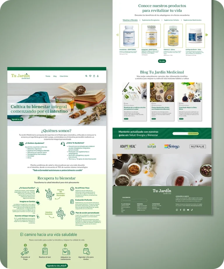 Tu Jardín Medicinal es un eCommerce desarrollado en Shopify, especializado en productos medicinales naturales, integrando un sistema de acceso privado para tratamientos exclusivos. Además, se implementó una automatización de correos electrónicos para guiar a los clientes en cada etapa de su tratamiento, mejorando su experiencia y fidelización. Esta solución combina venta online y acompañamiento personalizado, optimizando la relación con los clientes.